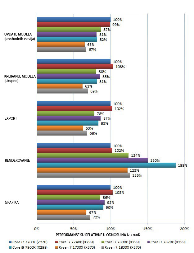 Naravno pri nekim procesima kao što je na primer renderovanje Revit će koristiti takozvani „multi-threading” pa će tada broj jezgara procesora bitno uticati na brzinu rada.